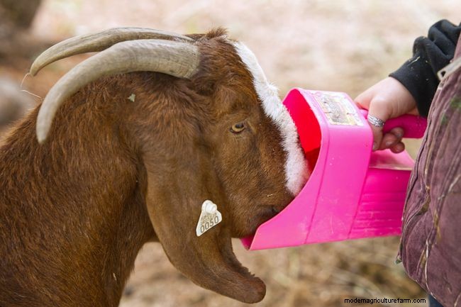 Grain feed or pelleted grain mix can add protein, vitamins, and minerals to your goats' diet. Most farmers supplement with grain feed when necessary—such as does who are raising multiple kids or in bad weather—but foraging and browsing is the foundation of good goat nutrition. Grain should not be overfed: it can make goats fat, cause illness and even death.