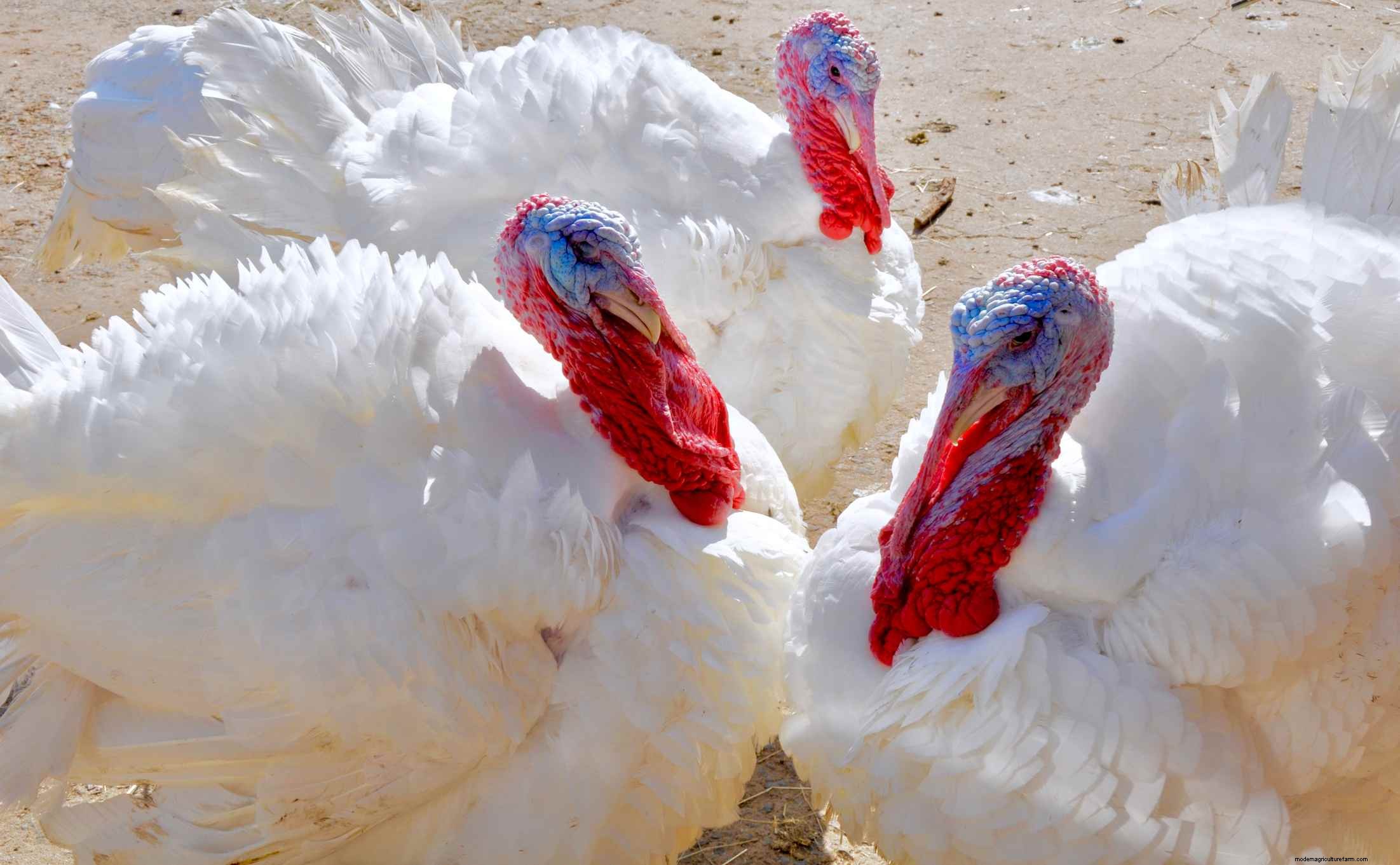 Broad-Breasted Bronzes and Whites are not actual breeds, just a non-standardized commercial strain used for meat, while White Hollands and Standard Bronzes are recognized breeds. Heritage turkeys include Bourbon Reds and Narragansetts; the latter are striking, medium-sized birds that excel at foraging and pest control. Royal Palm turkeys grow to a smaller finished size of roughly ten to sixteen pounds and are beautiful, different-looking birds.