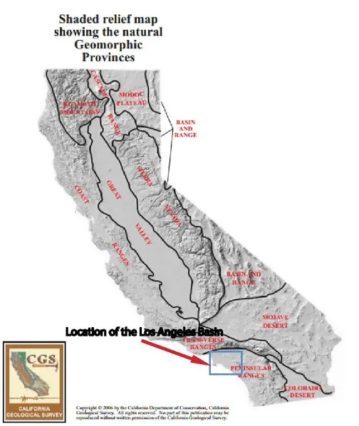 The Los Angeles Basin, along with the Santa Barbara Channel, the Ventura Basin, the San Fernando Valley, and the San Gabriel Basin, lies within the greater Southern California region.