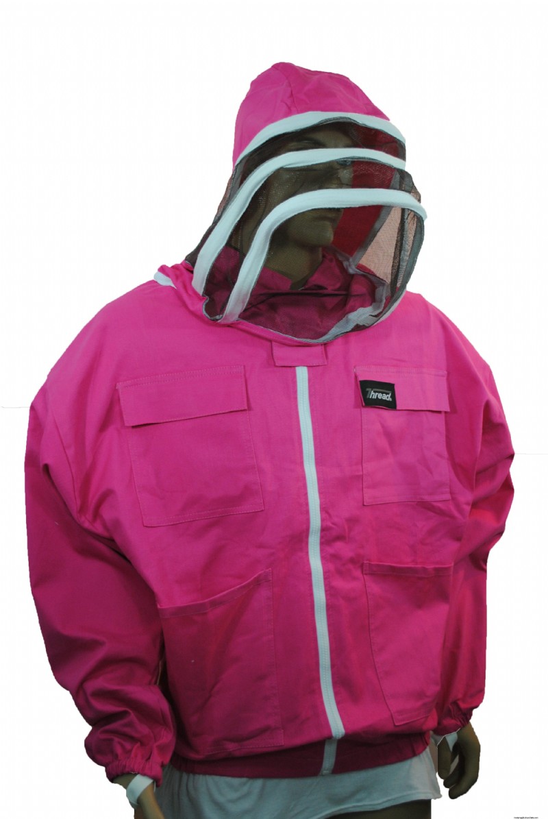 But maybe the standard bee suit isn’t for you. Maybe you prefer to make more of a statement when tending to your hives. In addition to being extremely pink, this jacket has practical features like elastic at the wrists and a fencing-style veil that zips open and shut.
