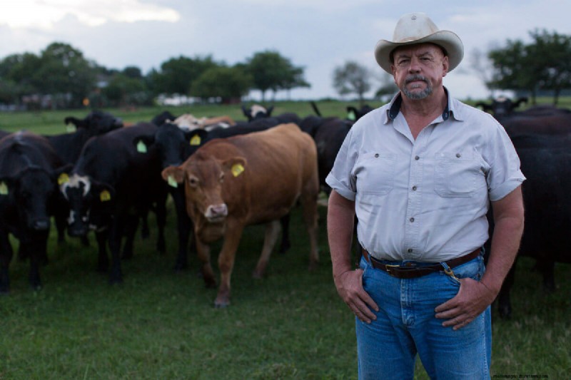 The first thing I notice is the pastures beneath the tires. The grasses are deep green and lush, dotted with broad blades and tiny flowers. “I used to strive to only have T-85 Bermuda grass, and when other grasses would come up, I sprayed pesticides to kill them,” he says in a drawl that turns “strive” into strahve and “grass” into gress. “Now when I ride through here I see three different Bermuda grasses, Dallisgrass, Johnson grass, a little bit of Buffalo grass, rye grass and crabgrass and clover.”