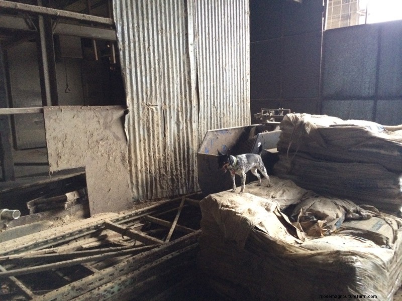Inside, the smell of rat urine is unmistakable: acrid, stale and pungent. The cavernous mill is filled with machinery and pallets of grain covered in the fine, grey silt produced by processing feed. It’s raining outside, and the water taps steadily on the sheet metal exterior.