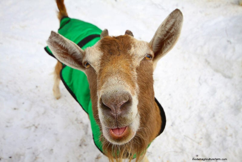 Unlike their wooly cousins, goats can easily get a winter chill. Keepers who notice their charges shivering are likely to gussy their goats in a nice fleece or sweater on those below-zero nights.