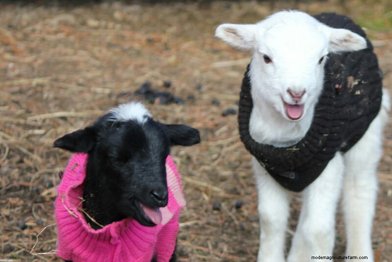 While ewes and rams can take the cold as well as any Midwesterner, lambs born in winter need a little extra help. Farmers use everything from old sweaters to specially made lamb-wear (not to be confused with Gwen Stefani’s clothing line) to keep the little guys warm.