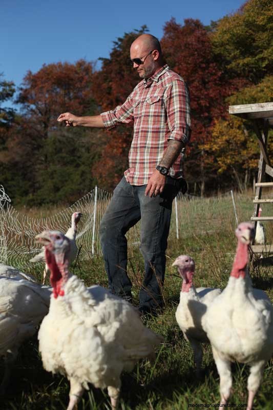 Charles Long with his free-range turkeys at Long Roots Farm. 621 Studios
