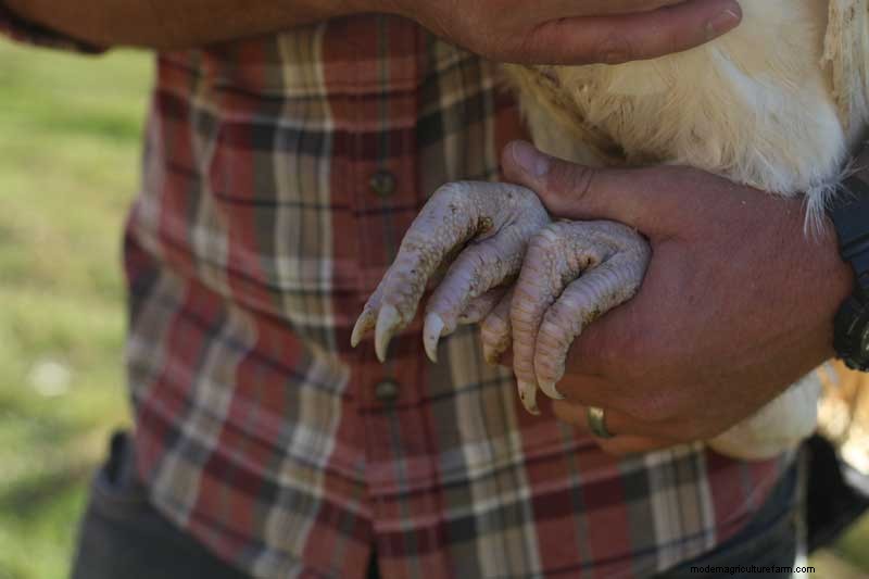 “We fence in the small animals at night to keep out coyotes and predators,” says Charles. “And we don’t clip the wings of our birds.”