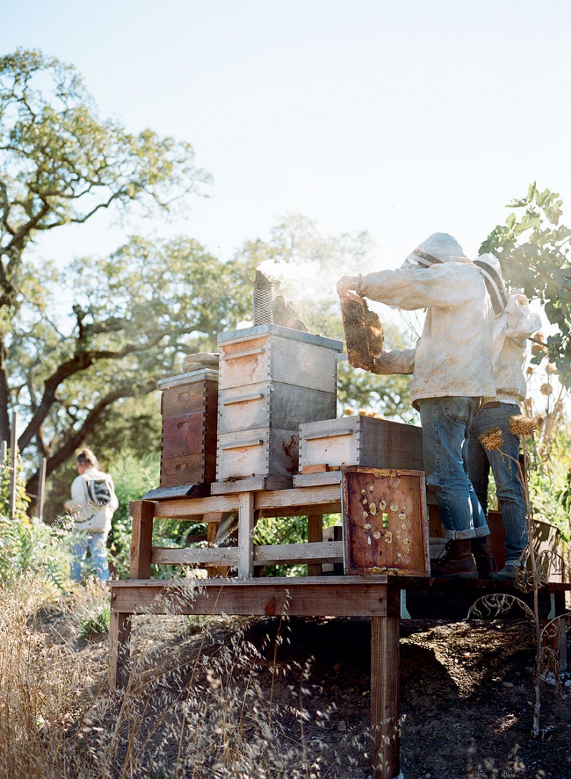 Longtime beekeeper Rob Keller of Napa, California, should not be counted among the recent converts. He does, however, have the current apiary craze to thank for his success. Since launching the Napa Valley Bee Company in 2008, the 52-year-old has helped more than 100 clients – individuals and businesses, including Alice Waters’ legendary Chez Panisse – start and maintain honeybee colonies. “I can’t just sell my bees and walk away. I know that queen’s mother and her mother’s mother. I’d rather guide someone through all four seasons,” Keller explains. “It’s weird, man. It’s like I’m turning into, not a crazy cat lady, but a crazy bee guy. I have the utmost respect for this six-legged insect.”
