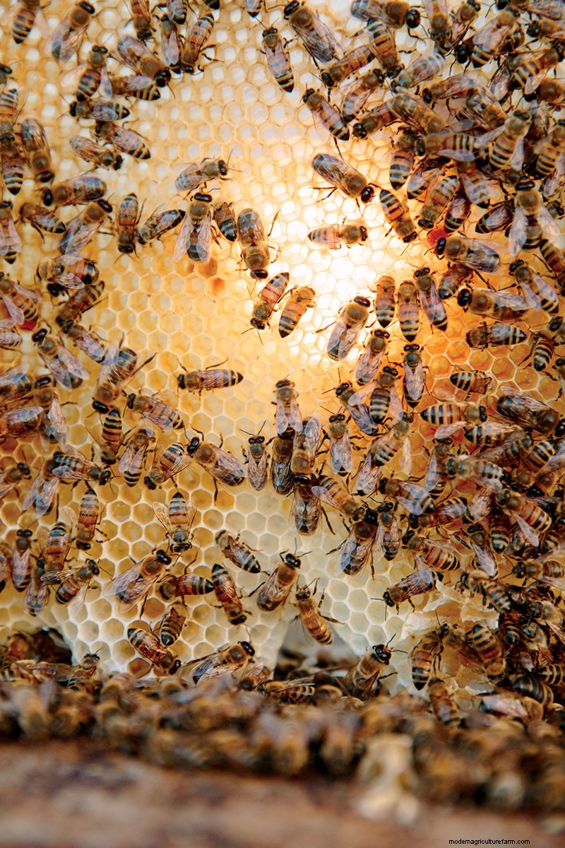 A knowledgeable neighbor can also point you toward the best pollen-providing plants for your zone. To keep the hive humming, bees need access to a mix of trees, shrubs, ground covers, edibles, and flowering perennials and annuals from spring through fall. On the advice of his peers in Washington state, McFarland planted more than three acres of clover, alfalfa, bee balm, coneflower, lemon balm, and mixed wildflowers. (For more details on bee-friendly horticulture, visit thehoneybeeconservancy.org.)