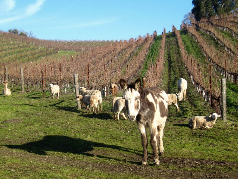 A flock of animals regularly roams through Tablas Creek Vineyard, dropping hundreds of pounds of manure. Photo courtesy of Tablas Creek Vineyard.