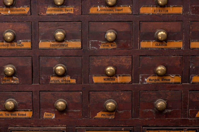 While it’s important to correctly store these garden staples to preserve them for the longest time possible, if you ask 10 different home gardeners how they keep their seeds, you’re likely to get 10 different answers. Some, like Duford, tuck them inside photo cases, while others love to store them inside little glass jars. One of my favorite ways that I’ve seen them stored is in old library card catalogs, waiting and ready to be browsed.