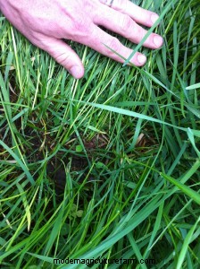 Competition for nutrients, light, and moisture can all lead to frost-seeding failure. The Kentucky bluegrass field next to the barn generally will not respond well to frost-seeding. The abundant N present from past manure applications together with the sod-forming nature of Kentucky bluegrass make it difficult for clover seedlings to get a start. Kentucky bluegrass also has a shallow root system and that can quickly exhaust the moisture in the top two inches of soil, increasing stress on the seedling.
