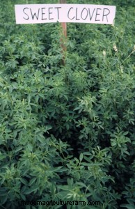 - Sweet clover is often used in wheat systems where frost-seeding is carried out. It is very drought tolerant, but prefers soils with a more neutral pH. It may have a bitter taste to animals at first; like anything else, they can/will come to eat it once they know what it is. One word of caution: moldy sweet clover often has high levels of dicoumeral (i.e., warfarin, rat poison), which is a vitamin K antagonist and ultimately can lead to internal bleeding and death. Scary. Again, this is not common and it can loom large in one’s mind, but it is wise to avoid trying use it as stored feed. You can learn more about it by reading Sweet Clover Production and Utilization in Indiana.