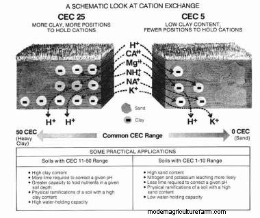 When soil pH goes up, so does CEC. The hydrogen ions (the “H” of pH) are cations too, and are taking the seats that non-acid cations would otherwise hold. If you have acidic soil and you can get your soil to a near neutral pH, you are also helping to improve your CEC.