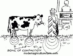 Soils can get compacted from machinery traffic and from animal traffic. The hooves of animals can force a lot of pressure on those upper 4-6 inches of soil. If animals are out grazing when the soil is wet, compaction is even more likely. Some studies have found pasture yields can be 16-40% lower as a result of compaction. Keyline plowing was ideal because it was said to alleviate compaction, increase pasture yields, and it wouldn’t interfere with grazing management. Since the plowing doesn’t disturb the pasture measurably, the herd could go back to grazing soon after each plowing event