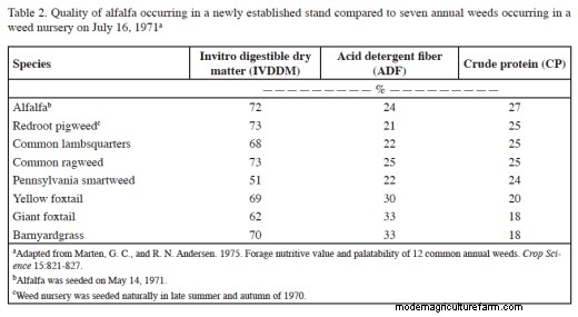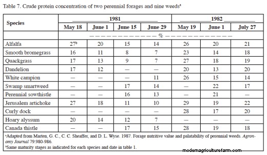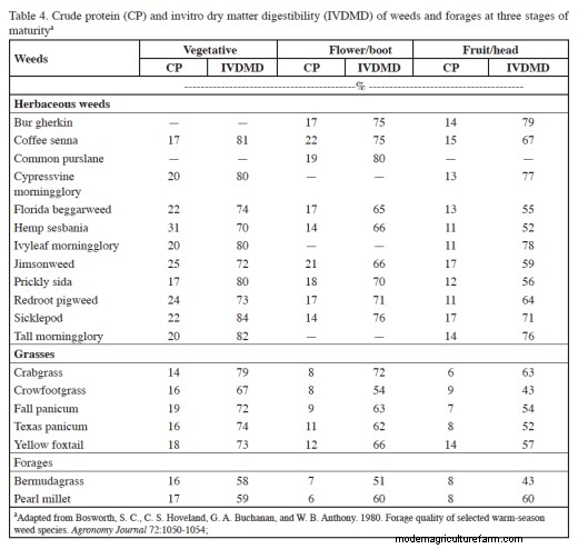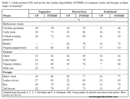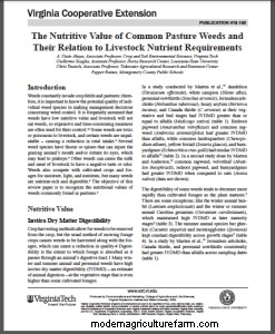 One of my favorite weed publications is Virginia Tech Cooperative Extension’s “The Nutritive Value of Common Pasture Weeds and Their Relation to Livestock Nutrient Requirements.” It reviews the research available on weeds and concludes that weeds can meet the protein values of almost all classes of stock that we raise.