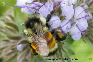 Monocultures have affected honeybees and many of the native bees similarly. Once one crop is done blooming, there’s nothing else for them to feed on. As a result, some species of bumblebees that were once abundant are now threatened. Nesting sites and overwintering sites for hundreds of different native bees have also been on the decline as suburbs expand into wildflower meadows, woodlots and wetlands converting diverse habitats into monoculture lawns.