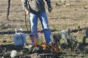 Your local propane dealer will sell torches along with the propane tanks if you don’t have one. I use a five- and 10-gallon propane tank and a torch from Harbor Freight. The torch is lightweight and has a relatively short hose so you don’t get tangled up with a cow. Whatever you do, don’t use your dad’s old system from the ’50s! Shop around for the best prices on propane. Many dealers will give discounts on purchases; you just have to tell them it’s for burning cactus. Make sure to test the torch connections with soap every time you connect to the tank after refilling it. Also, inspect the hose and all connections. If you have a dolly, you can use a bungee cord to strap the propane tank to the dolly. This makes it much easier to haul it around in the pasture while burning. It would also be wise to replace the torch and hose when they start to show signs of wear. Buy a good striker or lighter and keep it in your coat pocket or pants to avoid getting it wet should it be sprinkling or damp.