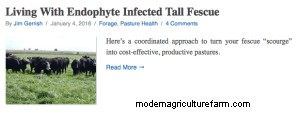 If this fescue is a toxic endophyte type, it really needs to be taken out and reseeded. The endophyte in K-31 is harmful to animal health and performance, and getting good lasting dilution from other species is not often successful. Trying to kill perennials in general with rolling alone won’t work since they will just regrow (unlike rye, which is rolled toward the end of its lifecycle); and trying to interseed into the fescue won’t work in a lasting way, since the animals will select for the fescue by picking out the more palatable interseeded species.
