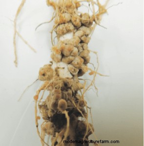Nodules should form on roots 2 to 3 weeks after germination. If you don’t want to dig up a plant to look, you can also use the color of the plant to diagnose whether or not nitrogen fixing is occurring. Light green, slow growing beans or alfalfa are a sign that nitrogen fixation is poor. The problem could be because there isn’t enough of the native rhizobia, or it’s the wrong kind. Seed companies have been solving this problem by selling pre-inoculated seed so you know the plant has the rhizobia it needs. If your seed was not inoculated, it is possible to inoculate plants after they’re in the field. Since this often doesn’t work, you’ll want to get expert advice to go forward.