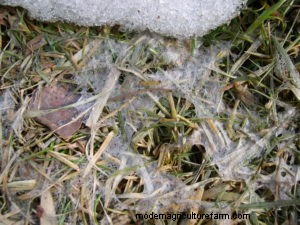 The warmer fall we’ve had this year (in Southern PA, where I’m writing from) was encouraging to many who had planted winter annuals – plentiful fall growth is a plus for winter survival and is exciting because the status quo seems to favor the alternative. We have to be careful with this scenario, however, since excessive growth in any crop prone to matting is perfect for creating damp, just-above-freezing conditions under the canopy of plants and snow. The poor air circulation, moisture, and live plant material give the fungus the shelter and food source it needs to survive.