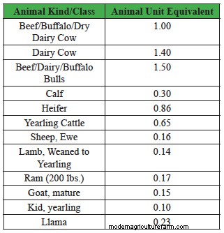 Small livestock operations with 100 or fewer grazing dairy cows or equivalent can submit applications to enroll up to 200 acres per operation. To figure out what that means for you, check out the table below showing Animal Unit Equivalents: