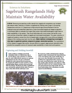 According to the Sage Grouse Initiative (SGI)’s newest Science to Solutions report – which summarized research from USDA’s Agricultural Research Service (ARS) – a sagebrush-dominated watershed holds water in snow drifts an average of nine days longer than one dominated by juniper trees.