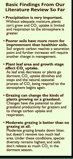 So where does this leave us? When I spoke to some of the scientists involved in these studies, I asked what they would tell grazing managers interested in increasing carbon uptake. Their advice coincides with guidelines that graziers have used for years. Graze moderately, time grazing so that plants can put on good growth in the spring, and keep the soil covered. As one paper concluded, “Current range management in the northern Great Plains aims to optimize forage production through litter carryover for soil moisture conservation and this appears to be consistent with maintaining the soil organic carbon pool.”