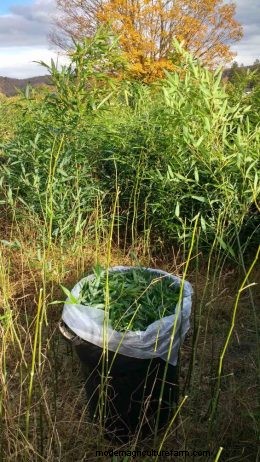 In mid-October I completely defoliated 100 square feet of bamboo. Two years ago when I picked leaves for analysis I took leaves only and left the twigs. After watching my cows eat the plant last winter I included twigs too and left the woody cane behind because as they browsed they pulled off most of the twigs. This took the protein % down slightly (~16% instead of 18%). Total leaf+ twig material came in at 33 lbs green weight. Multiply that by 432 (the number of 100 sq ft sections in an acre) and the total wet yield for an acre of bamboo forage near the end of the growing season is 14,256 lbs, or about 7 tons. Of course we want to compare apples to apples and the only way to do that is on a dry matter basis. I sent a sample of leaves to DairyOne for analysis right after defoliating the plants and DM composed 47.5% of the weight. So… 14,256 lbs x 0.475 = 6,771.6 lbs, or a little less than 3.5 tons/acre of actual yield.