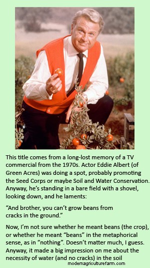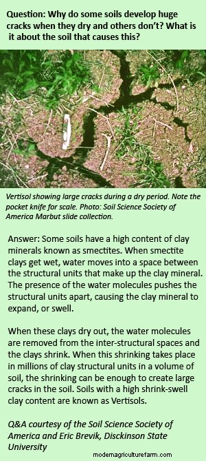 A note to the scientist-types out there: Yes, I know. There may be other factors here that influence the degree of soil cracking. Maybe compaction? Maybe something else? Please respond in the comment section with your own hypothesis.