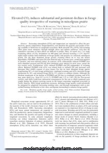 What they learned was that, “Although forage production was enhanced…this came with a substantial reduction in forage quality, which would negatively affect ruminant weight gains.” (Augustine et al 2018) The combination of warming and elevated CO2 reduced the digestibility of C3 grasses from 62.8% to 61.5% and C4 grasses from 63.3% to 61.2%.