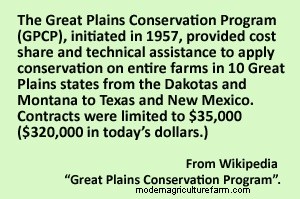 Geting damaged and low-grade cropland into useful grass cover is a primary objective of the Great Plains Conservation Program. Work done with help from the Agricultural Conservation Program and the Conservation Reserve Program has given further impetus to this undertaking.