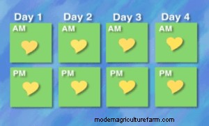 But how many new things do they need to try to become optimistic? l noticed that in all the experiments where animals were trying a new food over time, it took them about 7 days, or 7 tries to reach the maximum they would eat of that new food. For the training process, I translated that into giving trainees 8 new food tries over 4 days.