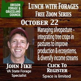 We learned all this tips from Jon at his recent presentation for the Oregon Forage and Grasslands Council’s “Lunch with Forages.” Like the name says, these weekly Zoom meetings look at forages and their grazing. These meetings are not only thought-provoking and beneficial to your operation, but they are also FREE. You’ll enjoy the informal setting where you can ask questions and if you stay for the “At the Bar” session you’ll be able to talk with participants and speakers alike.