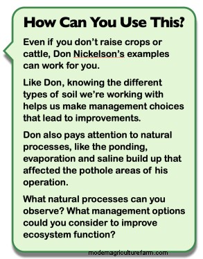 “In our area there are a lot of potholes,” Nickelson said. “So with excessive water, ponding and ditch effect, saline areas start popping up and expanding if they aren’t cared for or treated differently than the rest of your crops.”