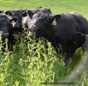Weed-eating livestock come with lots of benefits to the grazier too! If cows or other livestock eat weeds, you don’t have to spend money on herbicide or buy fuel for spray rigs or mowers. You don’t have to rent goats (sorry goat producers). And if you’re not interested in management intensive grazing, you don’t have to buy fencing equipment and set up any fences to get the cows to trample or eat the weeds. They just roam through pastures as they always do, adding weeds to their diets. Finally, weeds are VERY nutritious often the equivalent of alfalfa. So what’s not to like?!