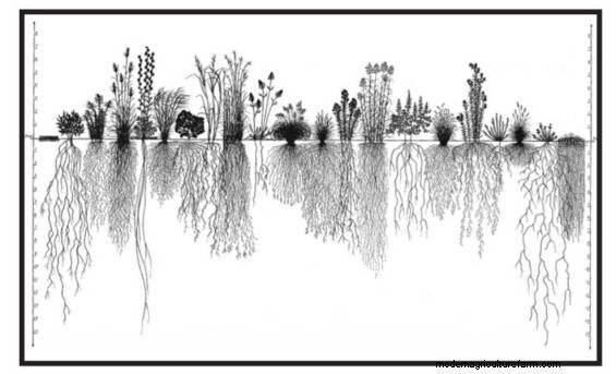 Here’s a nice illustration of the differences in plant roots among various types of plants. When we have the maximum concentration and variety of plant roots, then we’ve truly maximized living roots: