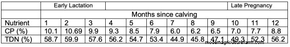 We can also look at Total Digestible Nutrients (TDN) to see how honey locust pods match up to animals needs. Total digestible nutrients add up the digestible fiber, protein, lipid, and carbohydrate components of a feedstuff or diet and is useful evaluating beef cow diets that are primarily forage. Our analysis showed TDN values of 68.4%, 67.6, and 69.4% for the three different varieties. The table below shows what a cow requires, and as you can see, honey locust does fit the bill for TDN and protein.