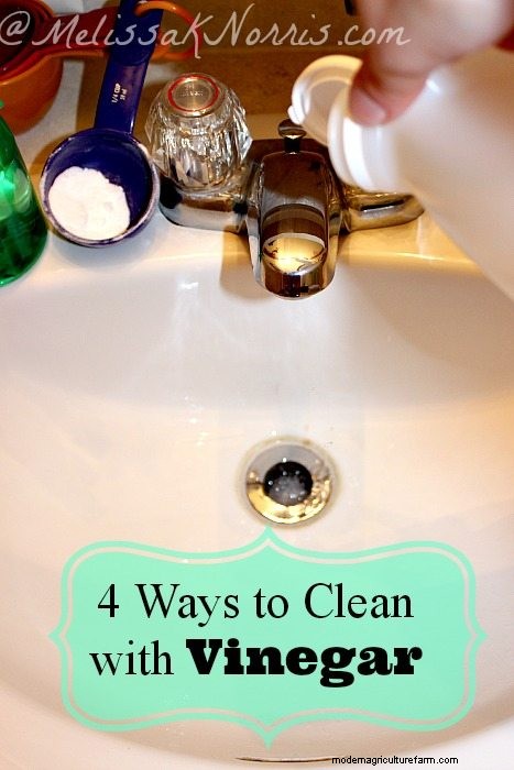 - Drain De-Clogger. Vinegar is also an awesome way to de-clog drains. Pour an 1/8 to a 1/4 cup of baking soda down your drain. Follow it with a chaser of vinegar. I pour until it reaches a good foam, allow it to foam for a few seconds, and chase it again. Let your drain sit for about 10 to 15 minutes and follow with a cup of boiling water. For an especially clogged drain, repeat. I do this every other month or so to keep pipes clear.