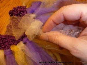 Now take your strips of tulle and fold them in half.