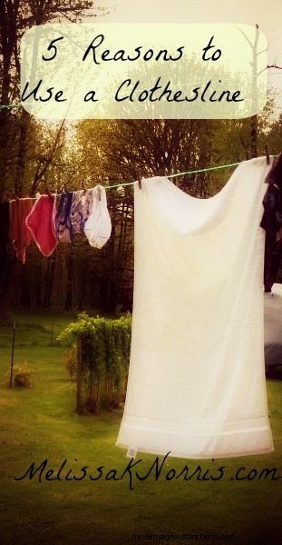 1. To save money. During the summer months, when I can hang out our laundry to dry almost every day, I knock off $50 from our electric bill.