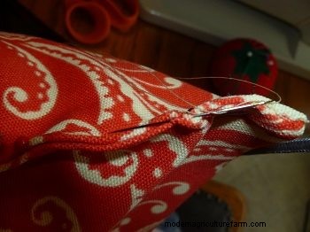 Next, stitch the opening closed by hand. Be careful to hide the thread on the inside of the seam.