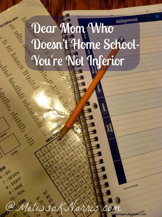 If you're a mother who doesn't home school your children, you are not inferior as a parent.