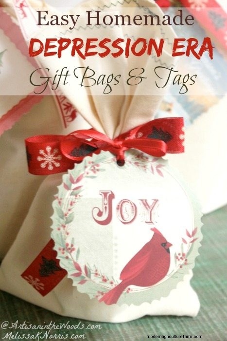 I think the story of how her family has made gift tags from their Christmas cards since the Great Depression is a beautiful testament to re-using what we have and as a family tradition. You guys know my love of Great Depression Era tips. These bags are cute enough to hide things on the shelves and leave out all year long. Here is Andrea's homemade gift bags and tags tutorial!