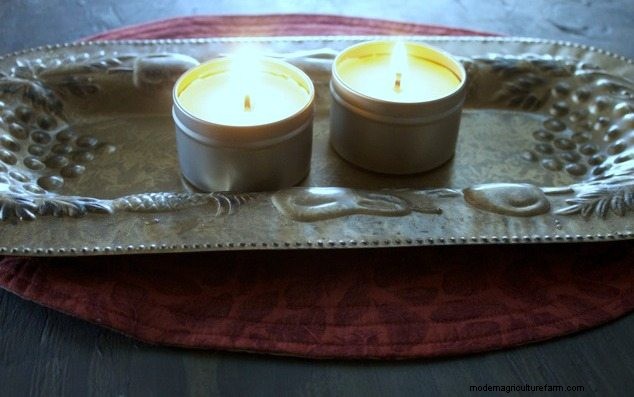 I decided to try to figure out how to make a candle with items that could be grown or harvested on a farm or homestead (especially useful in times of emergency). While I do not currently have bees ( I really want one of these next year), I have a dear friend who makes beautiful hand dipped taper candles with her beeswax. I, however, am partial to container candles.