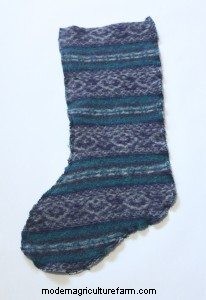 Wash your sweaters in warm soapy water and then dry in a warm dryer. This will felt the wool fibers and make your stocking more durable and easier to sew.