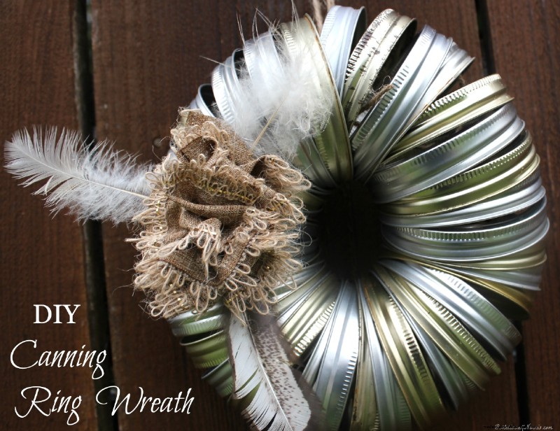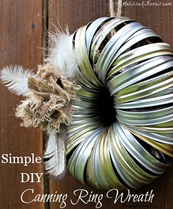 Tip: if you want a really rustic wreath, use rusted canning rings. Typically, you don't can with the rusted rings anymore because they're harder to screw on and don't get as tight. You shouldn't store your home canned goods with the rings on either, so this puts them to good use.