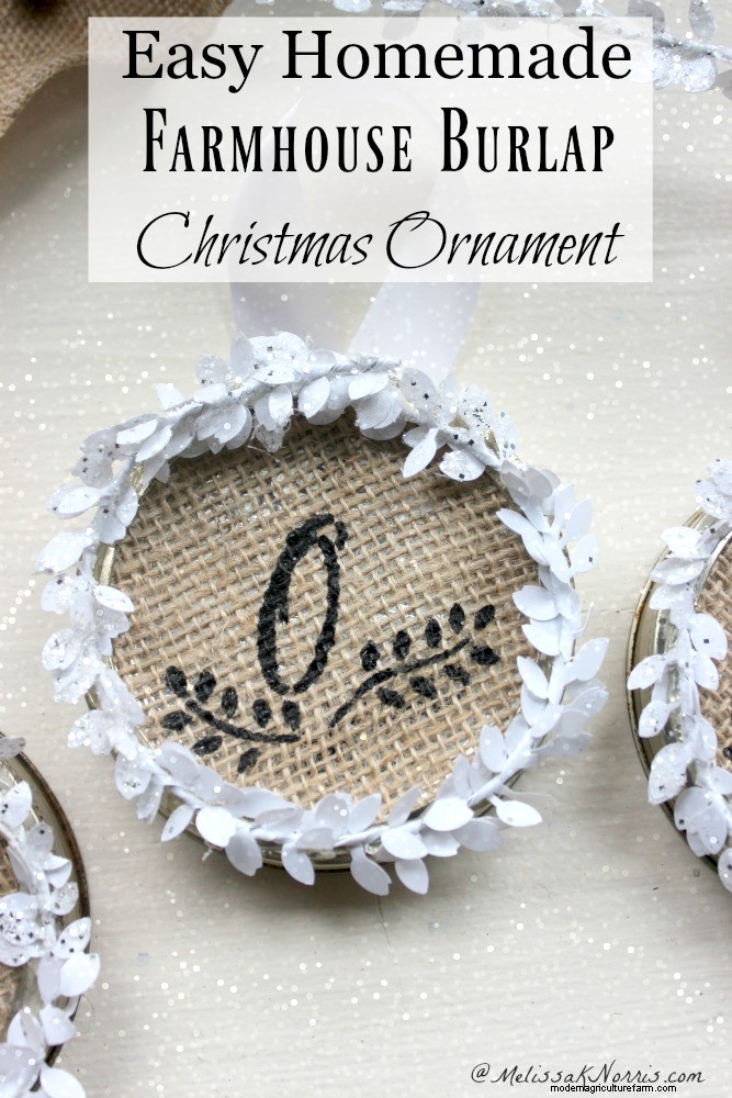Farmhouse Burlap Christmas Ornament made with items you likely have hiding around the house. Um, yes, please!
