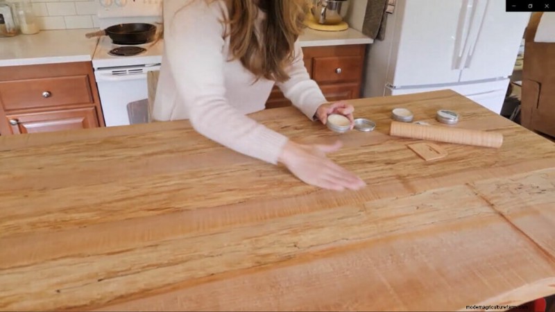 When working with larger surfaces, such as my butcher block countertop, you can soften the wood butter by placing it in the oven for a few minutes with the oven light on. I like to apply the wood butter with my bare hands since it also works as a great moisturizer for parched “garden hands”, but if you prefer to use a towel or paper towel that will work just fine. Just keep in mind that the coconut oil will stain the towel, so perhaps use one just for that purpose.