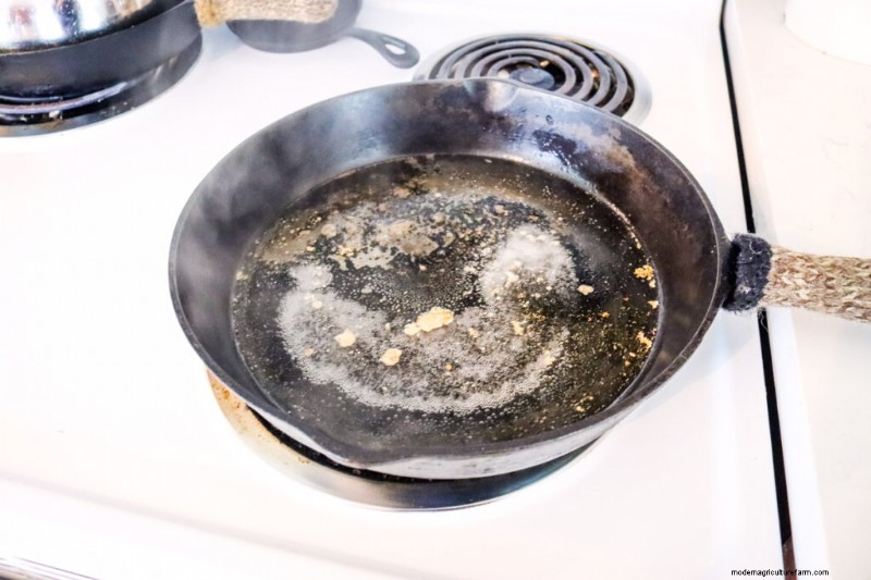 Not only that, but the pre-seasoned cast iron tends to be seasoned with unhealthy vegetable oils, so I like to seal mine off with a good coating of coconut oil or lard that I have rendered from pigs we have raised.