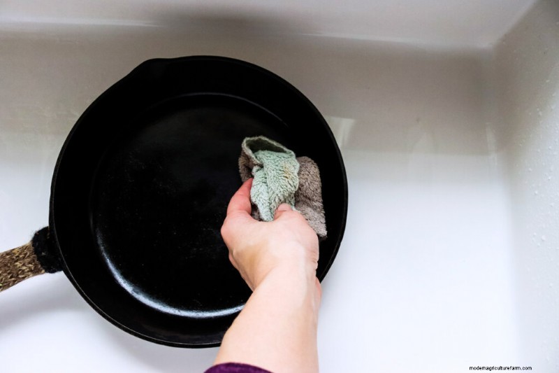 Keep wiping away the oil until just a very thin layer is remaining. Make sure the pan is completely dry and store it away.